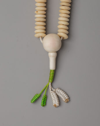 Practitioners are reminded of the transience of existence and the interconnectedness of all beings as they utilize these mala beads during meditation. The bone beads' organic feel and smooth texture act as a concrete reminder of the cycle of birth, death, and rebirth, inspiring practitioners to reflect on life's more profound truths. Practioners strengthen their bond with the present moment and the timeless principles that guide their spiritual path with each repeat of their mantras or prayers.