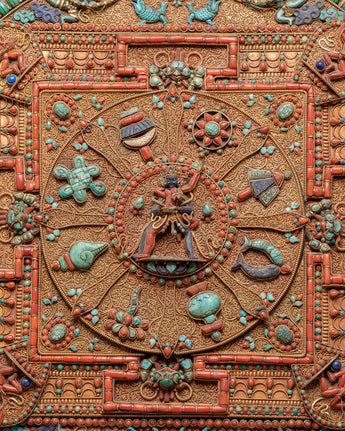 This Tibetan Mandala is more than a decorative piece; it is a spiritual relic that connects you to ancient Tibetan traditions and practices. It's ideal for any spiritual area, altar, or home decor, as it promotes positive energy, tranquility, and divine presence. Whether you use it for meditation or to decorate your home, this mandala will serve as a continual reminder of spiritual balance, protection, and growth.
