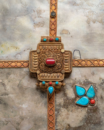 Materials: Copper Body, Gold Gilded, Original Stones: Lapis Lazuli, Turquoise