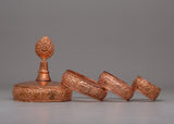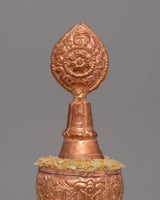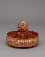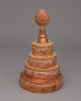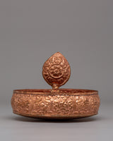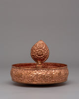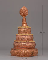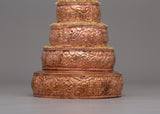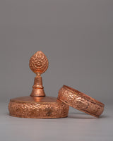 Our stunning 24cm Mandala offering set is made of excellent copper, making it an attractive and lightweight addition to any Buddhist shrine. With a width of 14cm and a weight of only 0.30kg, this precious item is ideal for altar settings or ceremonial purposes. Its outstanding elements include a Dharma wheel on top, representing Buddha's teachings, and four unique layers in ascending order, reflecting various Buddhist virtues.