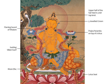 Note: Manjushri Thangka is an original painting from Enlightenment Studio located at Boudha Stupa.