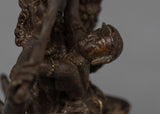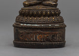 The Manjushri with Consort statue, made from vintage copper, is a beautiful and intricate piece of Tibetan Buddhist art. Manjushri is a revered bodhisattva who embodies the wisdom of all the Buddhas. He is depicted holding a sword that symbolizes the cutting of ignorance and a book that represents the knowledge of the Dharma. The consort, who sits at his side, represents the union of wisdom and method and is often depicted with a calm and peaceful expression. The statue is made from vintage copper, giving it a warm and classic look. The mantra is crafted on the round base of the statue, adding an extra layer of spiritual significance and protection.