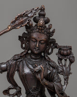 Begin your spiritual journey with our Manjushri Deity Statue, a harmonious fusion of machine precision and spiritual grace. This masterpiece stands 15cm tall and has a meticulously machine-made copper body, inviting the profound wisdom of Manjushri into your sacred space.