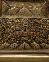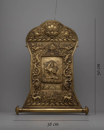 The Manjushri Metal Thangka is a work of art that combines spirituality and artistry. This thangka is handcrafted with precision on brass and stands 50cm tall, making it a captivating addition to your sacred space.