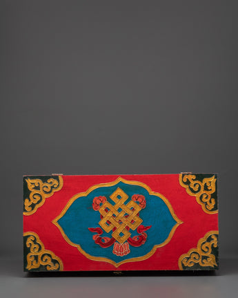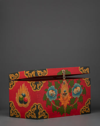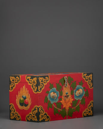 Made from and hand-decorated with vivid acrylic paint in traditional Tibetan designs, this meditation box adds both function and reverence to your practice. Whether placed on a shrine, used during retreat, or kept as a personal sacred storage piece, it protects your ritual items while honoring the spiritual path they represent.