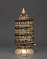 This Meditation Ritual Wheel is a finely handcrafted artifact combining copper and brass, standing 21.5cm tall and weighing 0.46kg. Rooted in Tibetan Buddhist traditions, it is designed to amplify prayers and mantras, making it an essential tool for meditation and spiritual rituals. Its elegant craftsmanship not only enhances its spiritual power but also adds a meaningful decorative element to any sacred space. Using this ritual wheel invites peace, blessings, and positive energy, helping you deepen your meditation practice and foster a harmonious environment for spiritual growth and well-being.