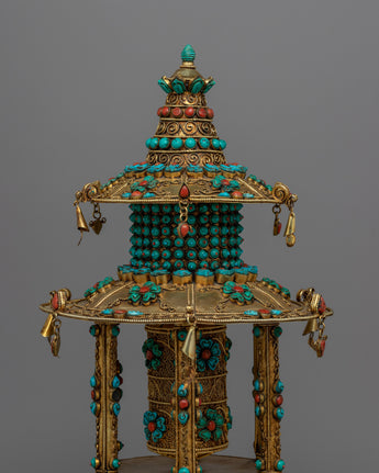 Meditative Turquoise & Coral Prayer Wheel | Artifact for Spiritual Practice and Mindfulnes