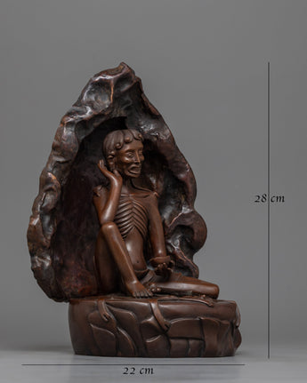 Made by Nepali artists using century-old craftsmanship, the statue is made of an Oxidized Copper Body. Every detail is hand-carved, depicting him in the cave where Milarepa was in Sadhana.