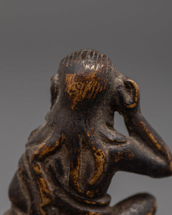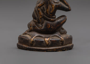 This Milarepa Tibetan Buddhist Statue depicts the famous yogi and poet-saint of Tibet in his iconic listening pose, one palm cupped to his ear. This gesture symbolizes his extensive practice of inner listening and spiritual awakening through meditation and song. The statue's flowing robes, exquisite facial features, and serene demeanor are reminiscent of traditional Himalayan workmanship. Its dimensions are 10 cm in height and 7 cm in breadth, making it ideal for a personal altar, meditation space, or spiritual art collection.