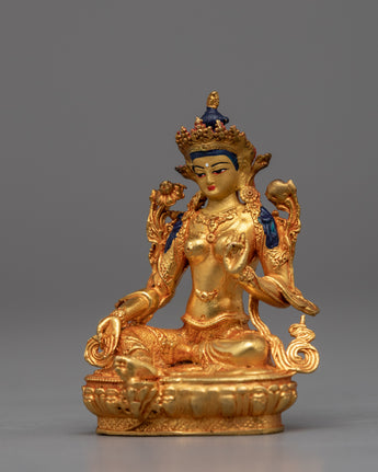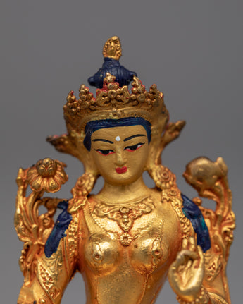 We have traditionally crafted the Mother Tara Statue by using the machine in a pure copper body and electroplated it with 24k gold. Green Tara is a supreme deity who guides lost and distracted beings to their original state. This indoor Himalayan art will be a tremendous gift from Nepal to a practitioner like you.