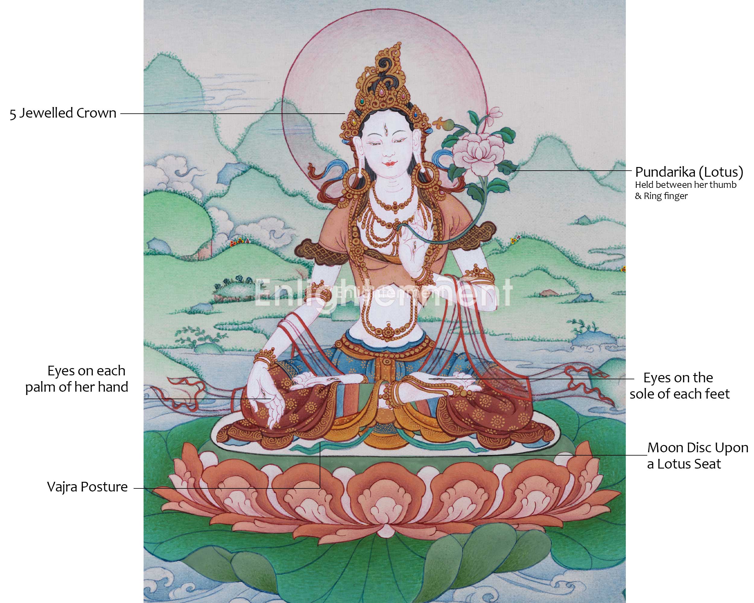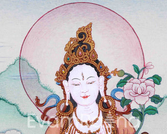 Tibetan Goddess White Tara Thangka for Home Decor | Female Buddha