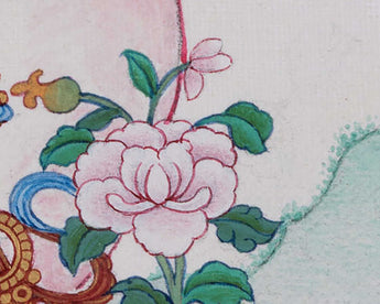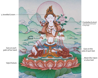 Find unadulterated polish as our Little White Tara Thangka, where imaginativeness meets profound effortlessness. This thangka, which was painted on fine cotton canvas, exemplifies the delicate fusion of tradition and beauty. The use of genuine 24K gold lends an air of spiritual purity, while the colors of the stones give the artwork depth and authenticity. White Tara, portrayed in her delicate magnificence, welcomes you to investigate the pith of tranquility and empathy. This thangka is something beyond a visual magnum opus; It opens up the teachings of White Tara about healing, compassion, and safety. It fills in as a wellspring of motivation, welcoming experts to interface with her energy and set out on a way of inward change.
