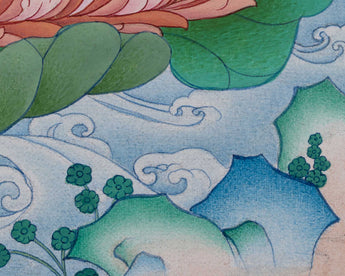 White Tara, the epitome of empathy and security, graces this little thangka with her immortal presence. You will find yourself drawn into the peaceful embrace of her teachings as you look at her depiction, which is enhanced by the depth of stone colors and the brilliance of genuine 24K gold. White Tara's quiet picture fills in as a sign of the limitless empathy and mending energy she epitomizes. This depiction of White Tara in the thangka is in excess of a visual portrayal; it's an encouragement to associate with her energy, look for her favors, and embrace her lessons on empathy and security.