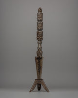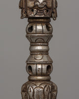 This magnificent piece is more than a holy instrument for Tibetan Buddhist activities; it demonstrates the maker's talent and commitment. The sharp, blade and finely done faces exude power and purpose, making it a standout piece in any spiritual or art collection. This Multi-Faced Iron Kila is a must-have whether you want a ritual item with deep spiritual meaning or a stunning centerpiece for your sacred area. Do not pass up the opportunity to possess a piece of Himalayan history and creativity that will inspire and preserve future generations.