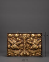 This Garuda wall art is not just a pretty artwork, but also a metaphysical talisman that repels negative influences and attracts positive energy into your space. With its aggressive posture and ornate adornments, the Garuda figure represents heavenly force and guardian energy, making it an ideal addition to your home altar, yoga studio, or ritual place. The golden brass finish showcases the complex carvings, giving it a period feel reminiscent of traditional Tibetan art. This wall hanging, which may be used in spiritual ceremonies or displayed as an artistic centerpiece, captures Garuda's protective energy.