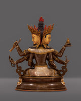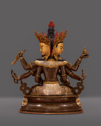 Namgyalma, with her three faces and eight arms, each holding symbolic implements, represents the three jewels of Buddhism — the Buddha, Dharma, and Sangha. Her practice is associated with healing and protection from harm, and she is often invoked in rituals for cleansing negative karma and extending life.