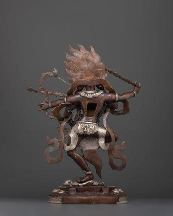 The Dakini Kurukulla figure captures Mahakala's dynamic and protecting spirit with its six arms and detailed detailing. The statue is brought to life by the acrylic paintings, which provide depth and color while the finely carved arms each express the power and vigilance of the deity. Its durability is guaranteed by the mix of oxidized copper and silver plating, which also links it to the illustrious history of Tibetan Buddhist art.