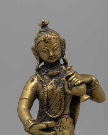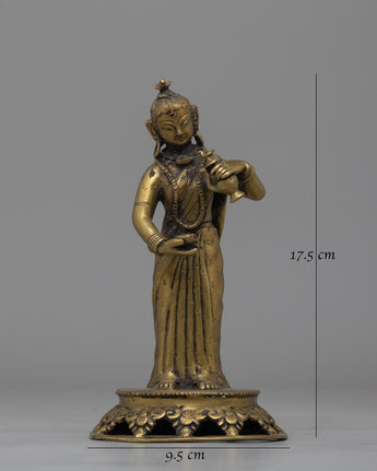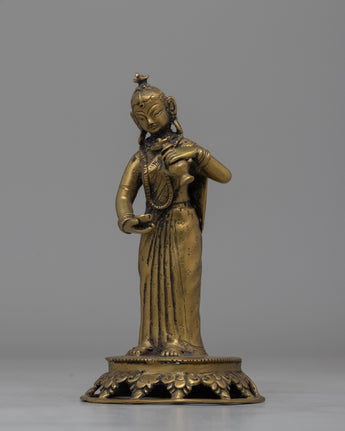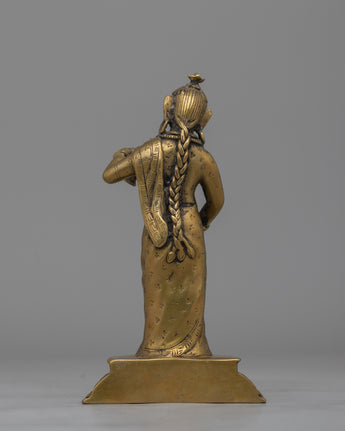 Crafted from durable brass alloy, this statue features delicate details that commemorate Nepal's traditional history. It weighs 0.53kg and is lightweight and easy to place while maintaining its strong quality. The Newari Lady statue is ideal for spiritual or ornamental purposes, and it will add peaceful energy to your house while paying homage to traditional Nepalese workmanship. This figure, whether used for personal meditation or as a one-of-a-kind gift, combines timeless beauty with cultural importance.