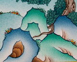 HAND-PAINTED WITH NATURAL STONE COLORS AND 24K GOLD IN TRADITIONAL KARMA GADRI STYLE.