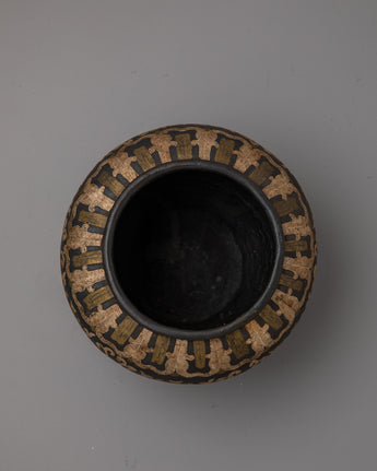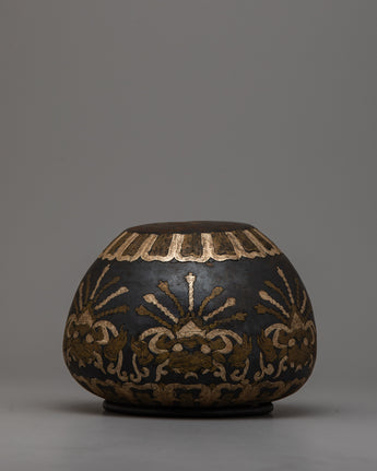 Offering Bowl Altar is a practical ritual instrument and a visually striking ornamental item that is perfect for spiritual practitioners, art collectors, and art aficionados. This bowl inspires mindfulness and reverence, whether used to contain offerings during regular spiritual rituals, exhibited on a holy altar, or used as a graceful accent piece in any space. Its deep spiritual symbolism and aesthetic beauty enhance any context, making it a treasured addition to any collection or hallowed space. This offering bowl is more than just a pretty item; it's a significant relic representing fine craftsmanship and profound spiritual principles.