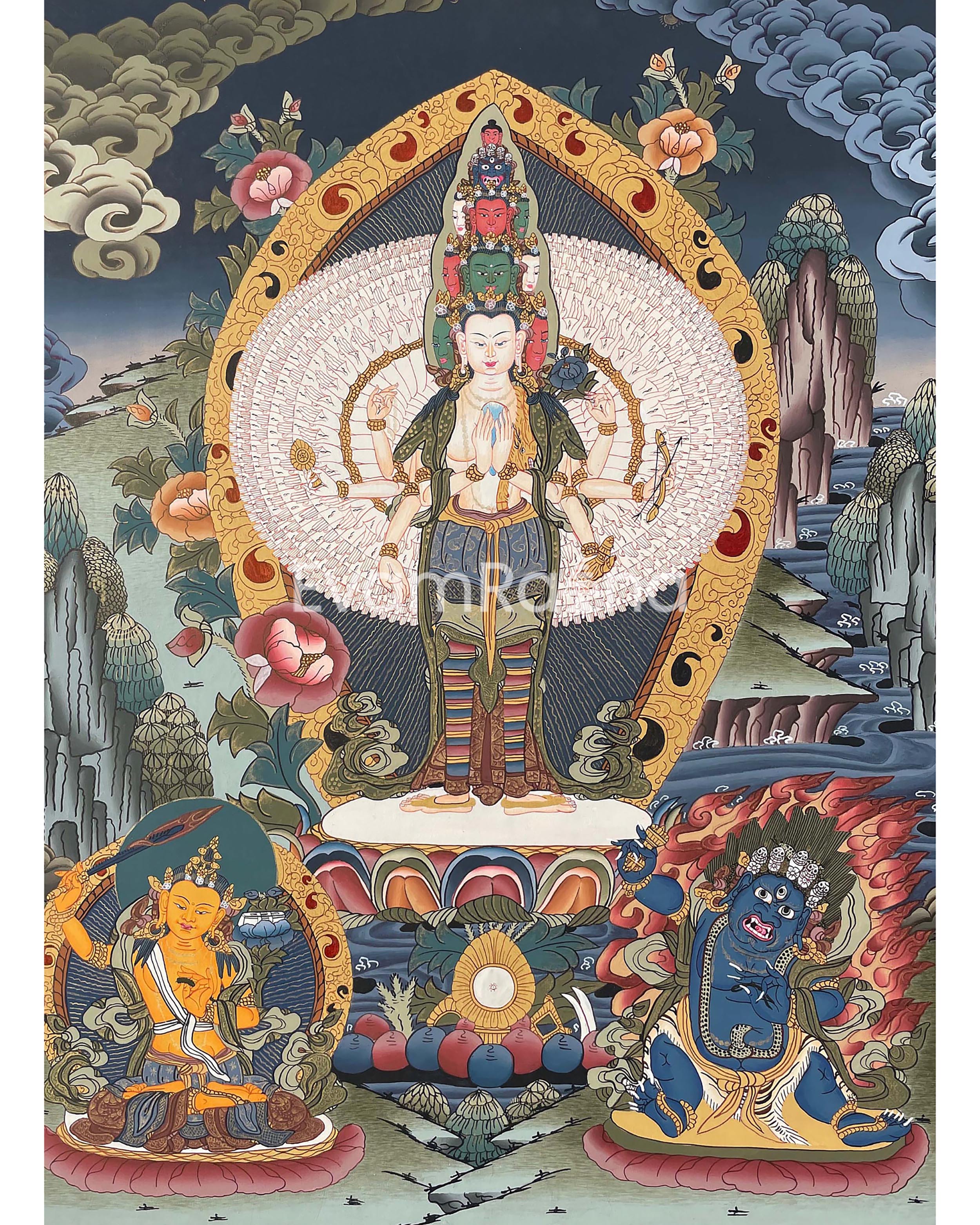 Original Hand-Painted 1000-armed Lokeshvara Thangka | Avalokiteshvara or Chenrezig Thangka |
