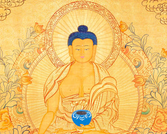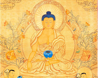 24K Gold Style Shakyamuni Buddha Tibetan Thangka | Meditation Object For Our Wellbeing