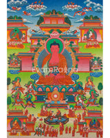 Original Hand-Painted Amitabha Buddha Palace | Sukhavati Thangka | Tibetan Buddhist Painting |