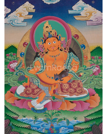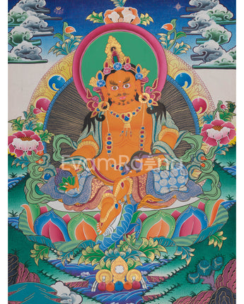 Original Hand-Painted Dzambala Thangka | Kubera Wall Decoration Thangka
