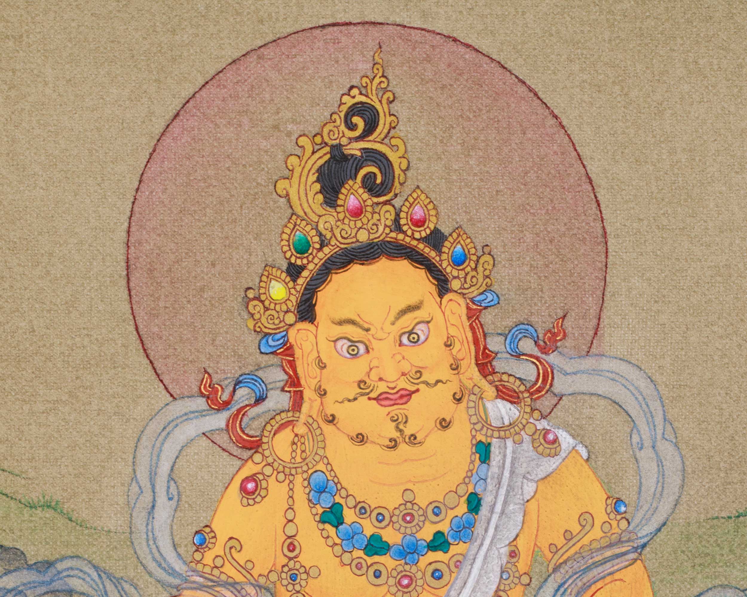 Traditional Zambhala Painting | Tibetan Artwork Representing Abundance, Luck, and Divine Protection