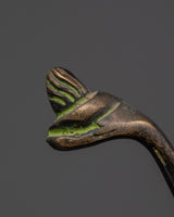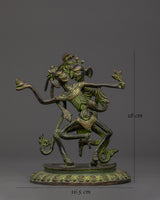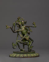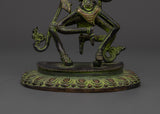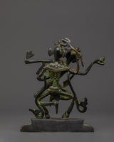 This Chitipati Oxidized Brass Statue depicts the renowned dancing skeleton deities of Tibetan Buddhism, which represent the timeless reality of impermanence. This sculpture, measuring 18 cm in height and 16.5 cm in width, is carefully crafted from oxidized brass and weighs 1.24 kg. The dramatic pose of the skeleton man and female couple, dancing in joyful oneness, conveys profound mystical significance and is ideal for display on a Buddhist altar, in a meditation room, or as a symbolic art piece.