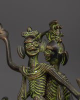 Oxidized Brass Chitipati Statue | Dancing Skeleton Deities of Impermanence