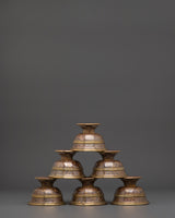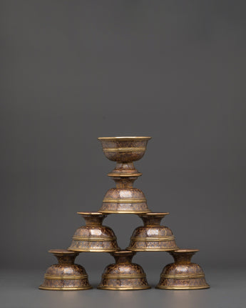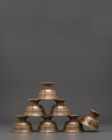 Tibetan Oxidized Copper Offering Bowl Set for Puja | Rituals Crafts