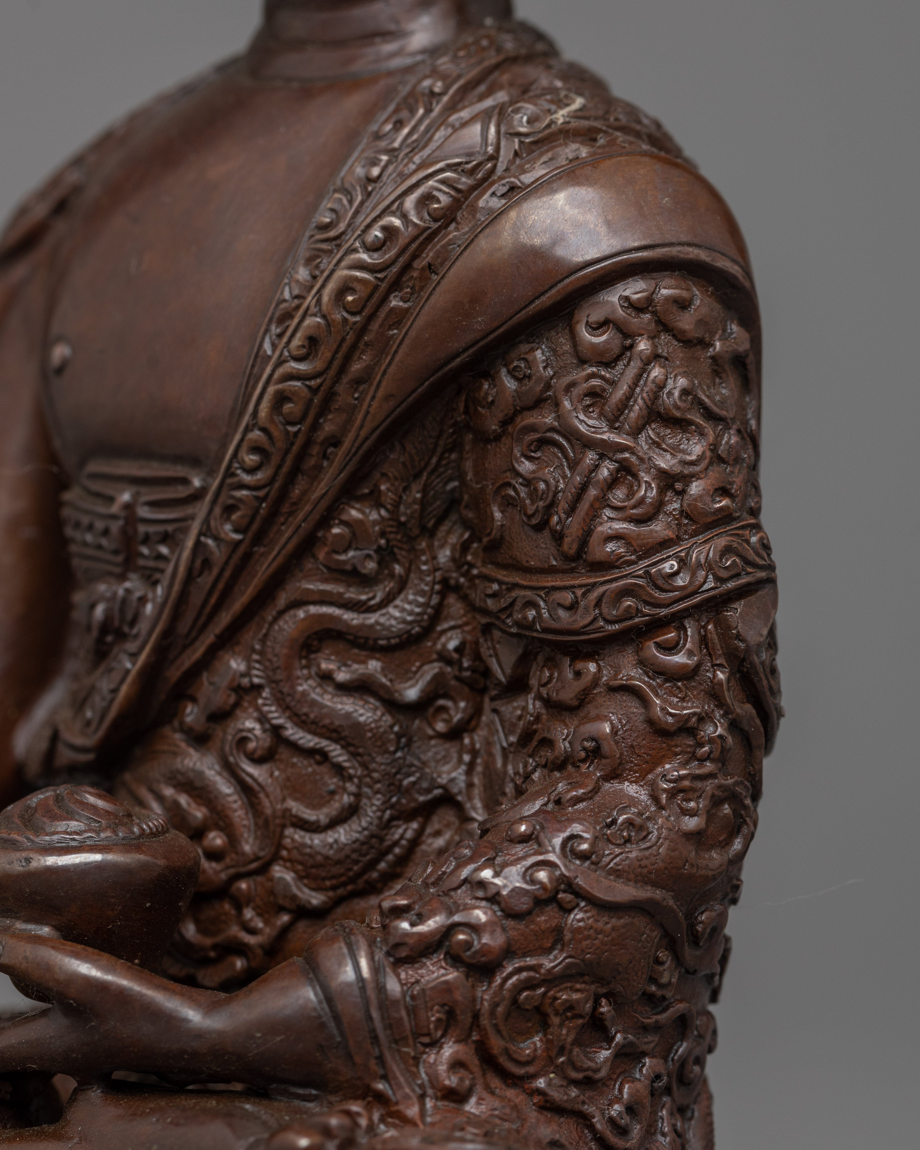 Our sculpture of Gautam Buddha, also known as Shakyamuni Buddha, is made of an oxidized copper body. It depicts traditional Himalayan workmanship passed down through generations of Nepali artisans.