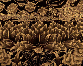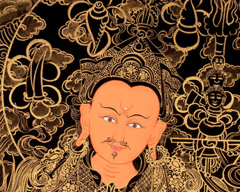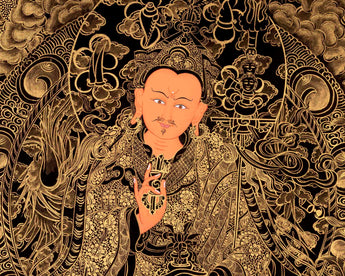Guru Rinpoche, or precious teacher, is known as Padmasambhava - the 'lotus born. Known as the second buddha who propagated the Buddhadharma throughout Tibet, he is considered the complete embodiment of all Buddhas of the three kayas. To benefit numerous beings and spread the Buddhadharma during the age of decline, Guru Rinpoche spread many hidden treasure teachings throughout Tibet and within the minds of his students. These were later discovered as termas.
