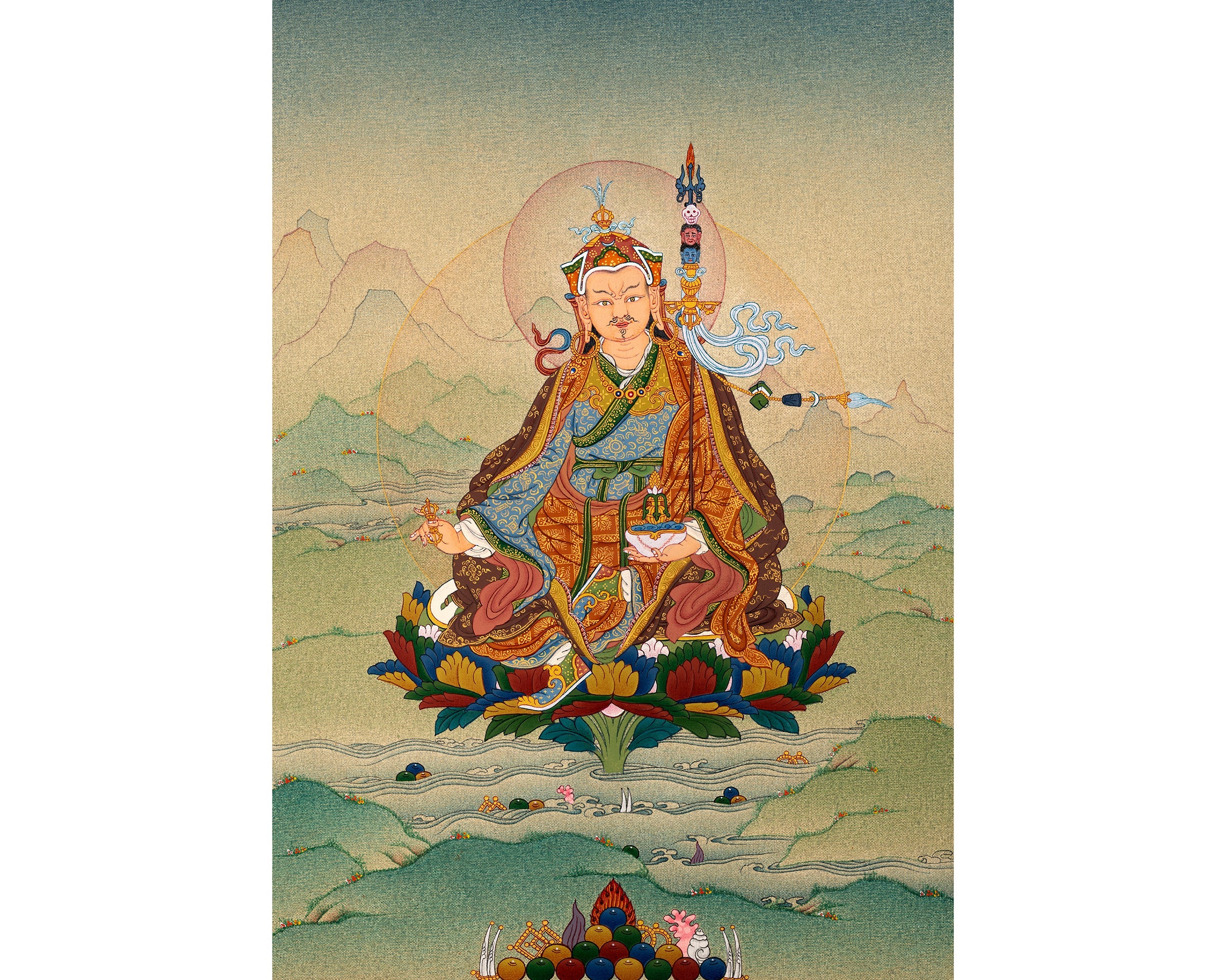 Padmasambhava Thangka | Tibetan Thangka in Natural Stone Color & 24K Gold