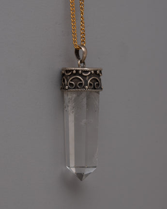 This pendant is expertly made, highlighting the natural appeal and clarity of the crystal and exquisitely balancing it with the lustrous sterling silver setting. These components work harmoniously together to form a pendant worn on special occasions or every day, bringing sophistication and beauty to any look. Our Sterling Silver Pendant reflects timeless beauty and exquisite craftsmanship, making it a treasured addition to any jewelry collection, whether worn as a statement piece or given as a gift to someone special.