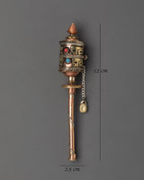 This 12cm Prayer Wheel Tibetan Buddhist Mantra Spinner, elegantly handmade from copper and brass and adorned with turquoise and coral-colored stones, enables you to harness the transformative power of mantra. It weighs only 0.016 kg and is lightweight and simple to hold, making it ideal for daily mantra recitation, altar use, or mindful travel.