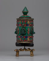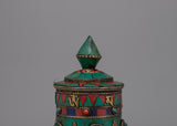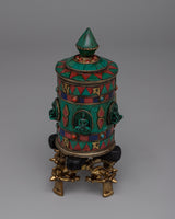 Prayer Wheel with Copper Body & Protective Stone Accents | Wheel with Turquoise & Coral Inlays