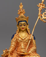 This statue is adorned with enlightenment symbols and serves as a treasured reminder of Guru Rinpoche's limitless compassion and wisdom. Whether placed on personal altars or in meditation places, it fosters a peaceful environment suited to spiritual practice and inward reflection. Each prayer made before this holy depiction is thought to invoke blessings and guidance on the path to enlightenment, cultivating a strong bond with Guru Rinpoche's transformational force.