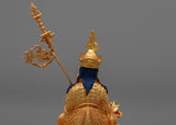 The "Prayers to Guru Rinpoche" statue represents tremendous reverence and devotion to the revered Tibetan guru. Crafted utilizing innovative machine processes, this statue has precise detailing on a copper body that is exquisitely decorated with sumptuous 24k gold plating. Standing at a modest 8.5cm height, it reflects Guru Rinpoche's spiritual essence and teachings, asking practitioners to pray and meditate.