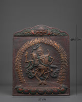 The Protector Deity Chitipati Wall Hanging is a strong emblem of spiritual protection, meticulously made with respect for Tibetan Buddhist traditions. This handcrafted copper wall art, measuring 46.5cm in height and 37cm in width, doubles as both a stunning piece of adornment and a sacred protective god for your home. The Chitipati, noted for its role in protecting practitioners from negative forces, instills a sense of security and calm in any setting. With its deep cultural importance, this Protector Deity wall hanging is ideal for anyone wishing to improve their spiritual surroundings.