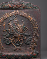 This magnificent artwork, made of copper, represents traditional Tibetan craftsmanship. The Chitipati, drawn in great detail, embodies the deity's might and wisdom. Copper was chosen for its symbolic powers of protection and healing, making this wall hanging an important addition to your sacred area. The Protector Deity is renowned for its ability to repel negative energy, ensuring that the environment in which it sits is spiritually safe and harmonious. The powerful, detailed artwork evokes the power of the Tibetan Protector Deity, making it a vital addition to your meditation area or shrine. Whether you practice Tibetan Buddhism or simply admire the rich cultural and spiritual heritage of such items, this Protector Deity Chitipati Wall Hanging is a strong reminder of the value of spiritual protection.