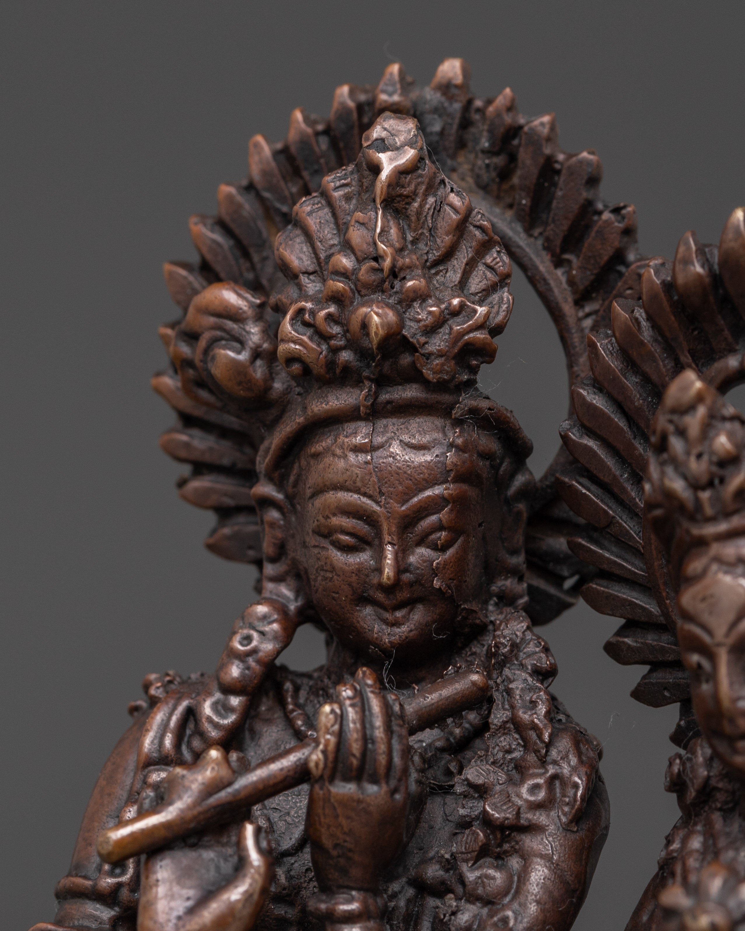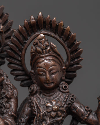 This divine sculpture beautifully captures the eternal bond between Radha and Krishna, invoking blessings of love, peace, and spiritual harmony. The oxidized brass finish adds a classic touch of elegance, ensuring this statue is not just a decor piece but a powerful reminder of divine grace and love. Whether used for prayer, meditation, or as a meaningful gift, this statue is a must-have for anyone seeking to connect with the spiritual energy of Radha and Krishna.