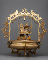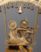Bring home divine love and harmony with our exquisite Radha Krishna Idol. Handcrafted with utmost precision, this brass masterpiece captures the essence of eternal bliss. Both Radha and Krishna are beautifully depicted sitting upon a swing, radiating pure joy. The intricate detailing on their garments and the serene expressions on their faces will surely mesmerize you. As Krishna plays the enchanting flute, you will feel the music of love resonating in your soul. Perfect for adorning your home or gifting to loved ones, this Radha Krishna Idol is a timeless symbol of devotion and divine connection. Embrace the divine presence and invite blessings into your life with this stunning piece of art.