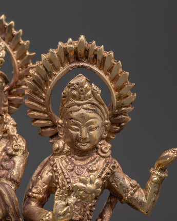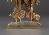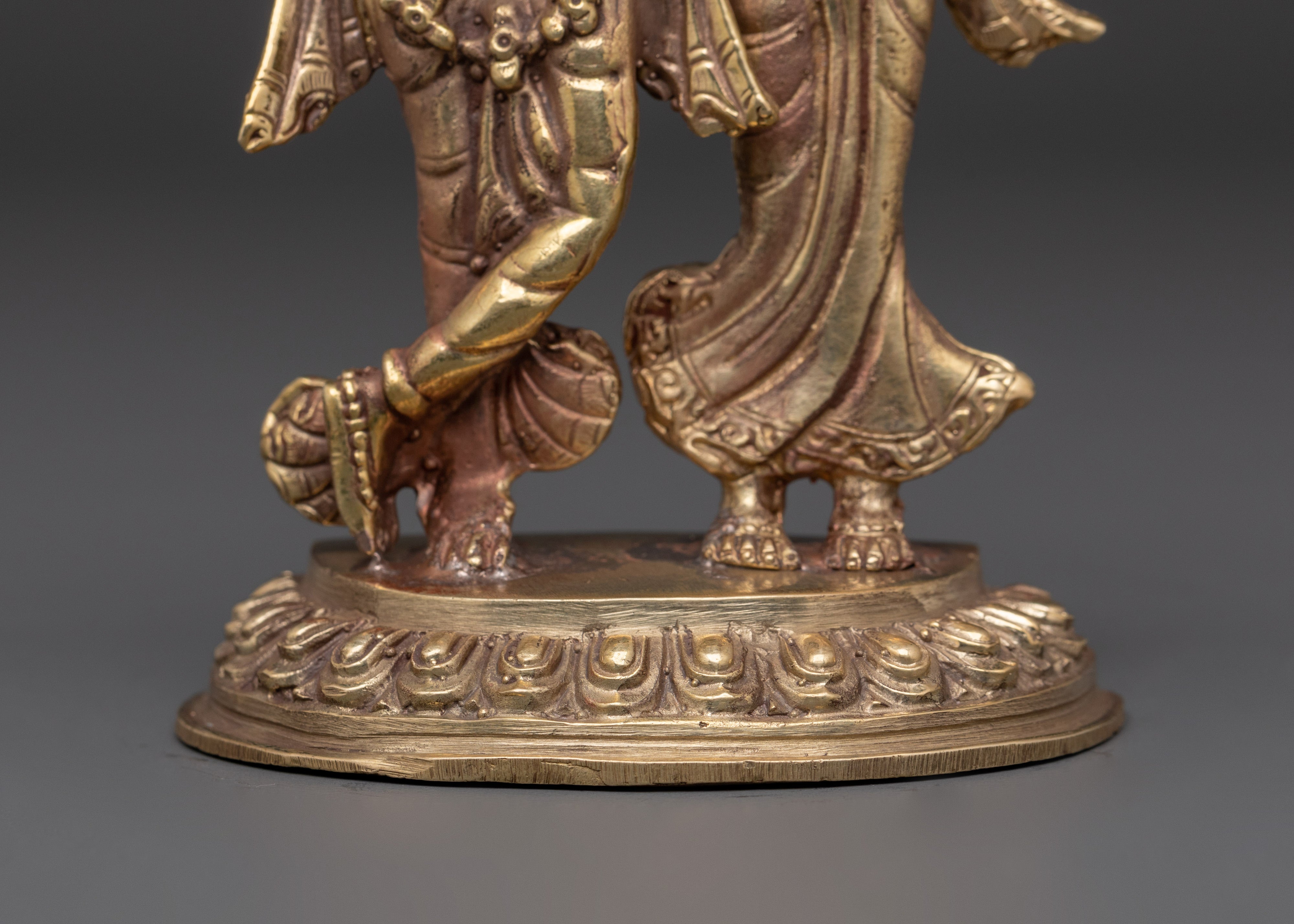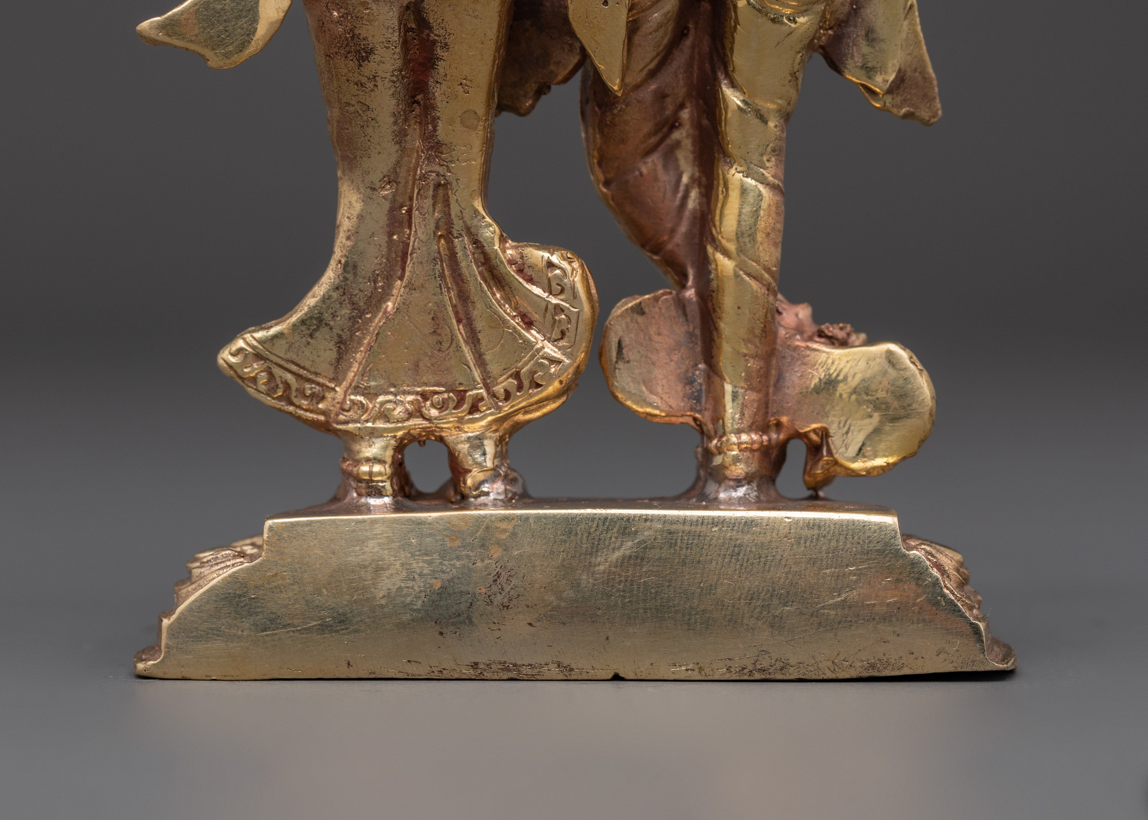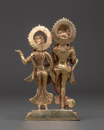 This exquisite sculpture showcases intricate craftsmanship, highlighting Radha’s flowing garments and Krishna’s expressive stance, embodying their sacred love. Its radiant golden brass finish adds a timeless elegance, perfect for home shrines, meditation spaces, or as a striking focal point during religious celebrations. Ideal for Janmashtami, Radha Ashtami, or as a meaningful gift for weddings, anniversaries, and housewarmings, this durable brass idol combines lasting quality with a size that fits beautifully on any altar or shelf. Embrace the divine presence and enrich your spiritual practice with this captivating piece.