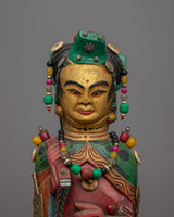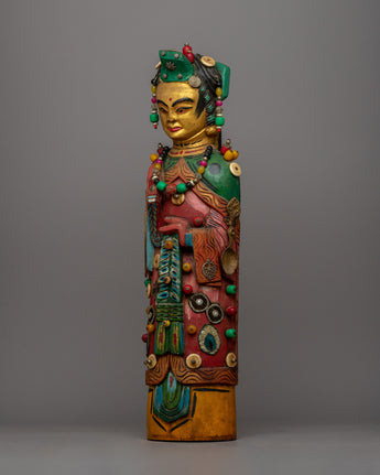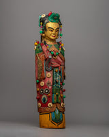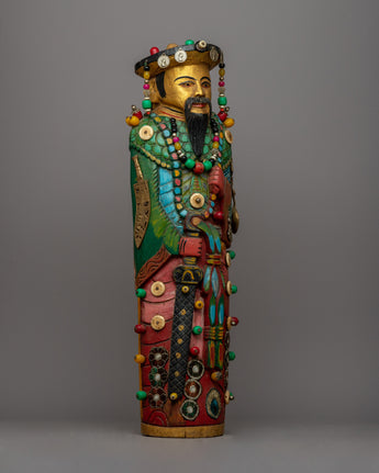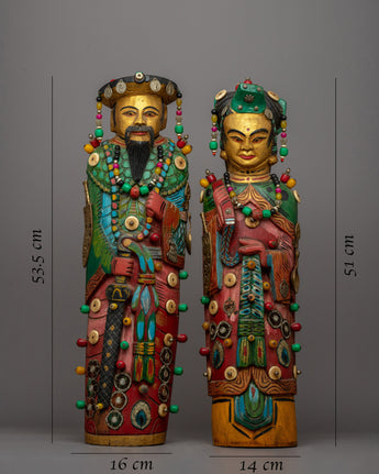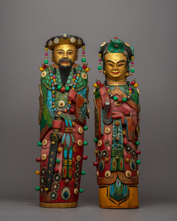 The Wooden Pair Statues of the Chinese Emperor and Empress are a magnificent pair that perfectly captures the grandeur and grace of ancient Chinese art. These beautiful statues, handcrafted from wood and exquisitely embellished with stones, represent the imperial character of the Emperor and Empress and their historical significance and cultural legacy.