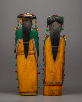 Wooden Pair Statues of Chinese Emperor and Empress | Traditional Chinese Figurines