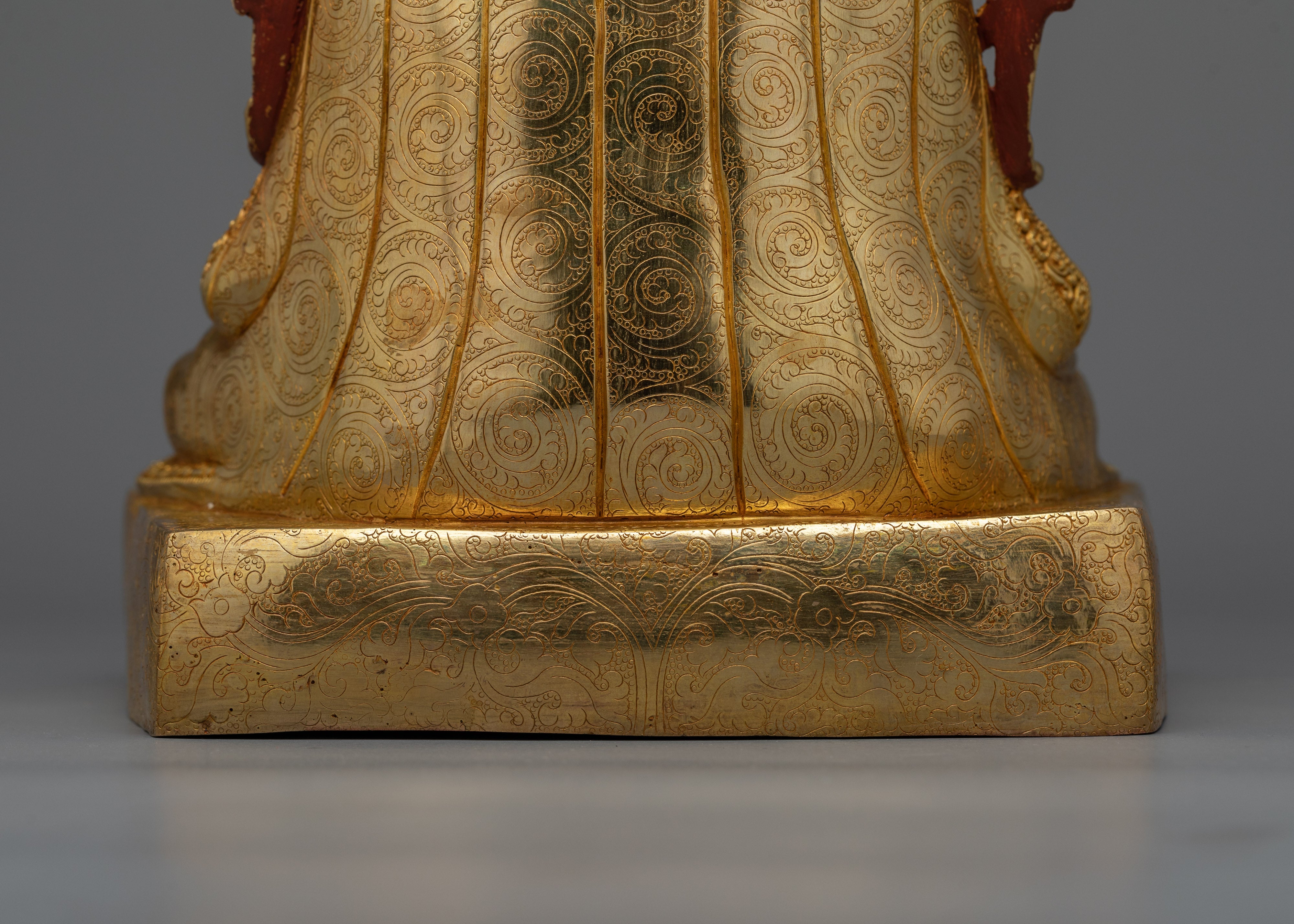 This statue is not just a beautiful work of art, but also a source of inspiration, symbolizing the Karmapa's teachings on compassion, knowledge, and universal responsibility. It is ideal for individuals looking to strengthen their meditation practice, improve their spiritual surroundings, or include a piece of Tibetan heritage into their personal or community area. Each part of the statue, from the tranquil expression to the rich monastic robes, is intended to elicit awe and thought, making it an essential addition to any venue committed to spiritual development and cultural appreciation.