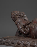 Handcrafted Reclining Ganesha Sculpture | Wooden Ganesh Statue