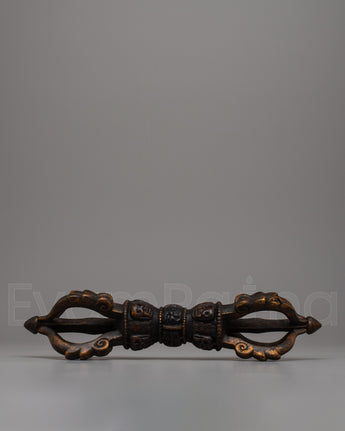Vajra is a Sanskrit word meaning both thunderbolt and diamond. It is a weapon used as a ritual object to symbolize the properties of a diamond (indestructibility) and a thunderbolt (irresistible force). The five-pronged vajra is the most commonly seen vajra.